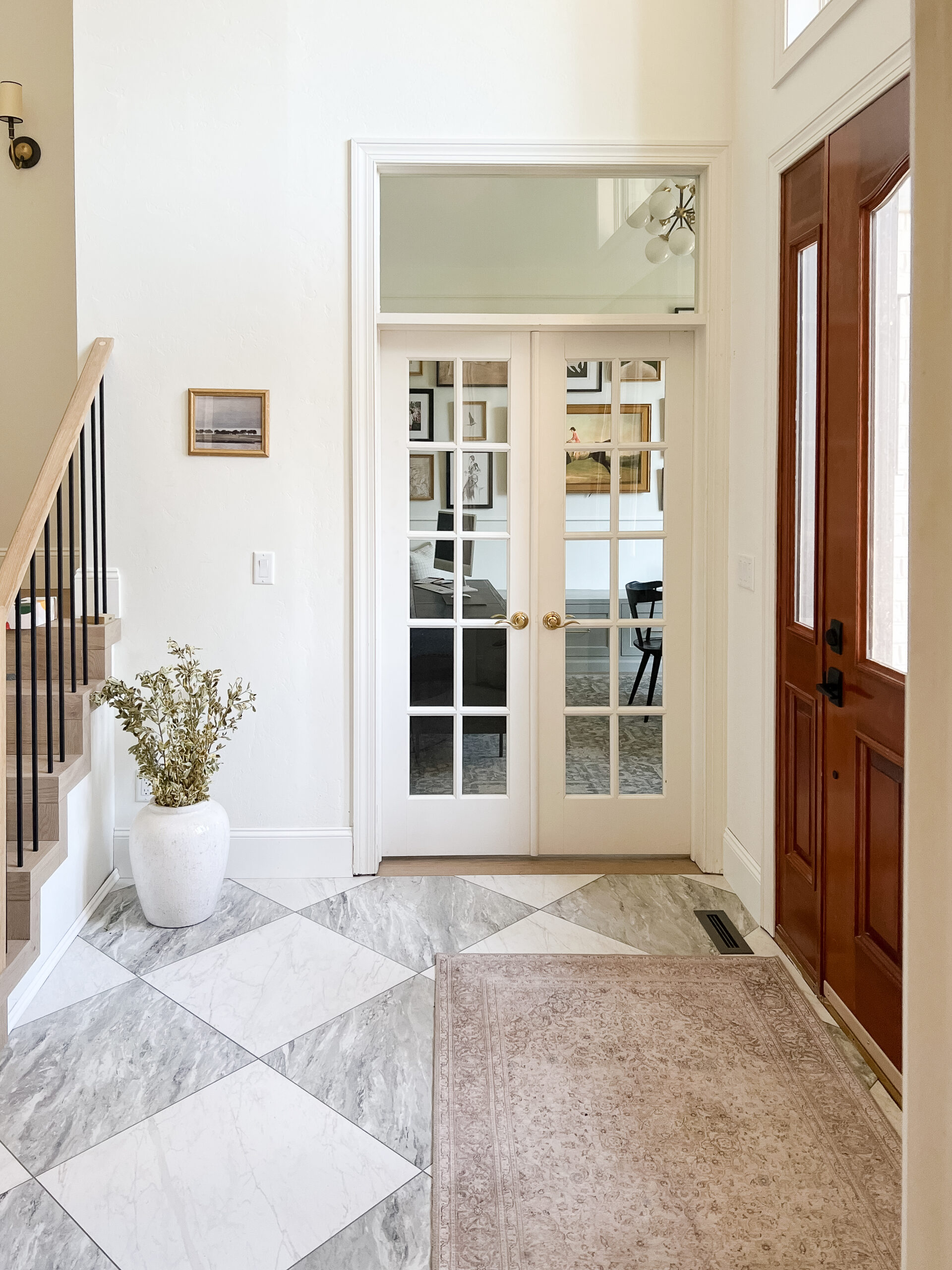 height with the rest of the doors in the foyer, and the glass panels opened up the room while