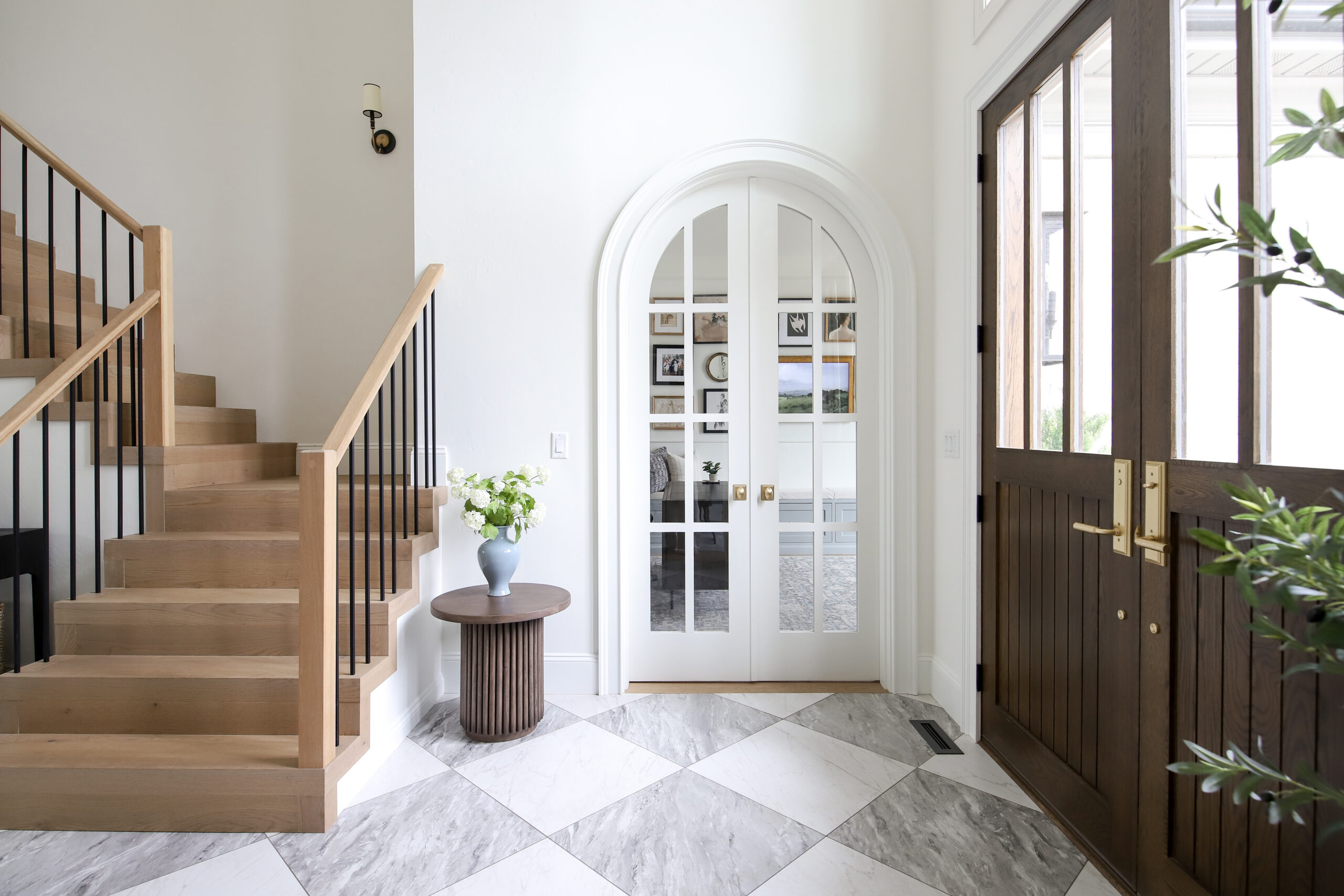 After: I replaced it with an arch-top door in White Oak. We added several arches throughout